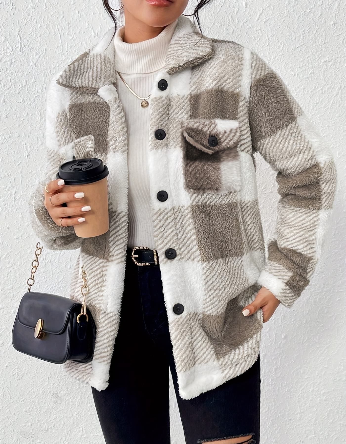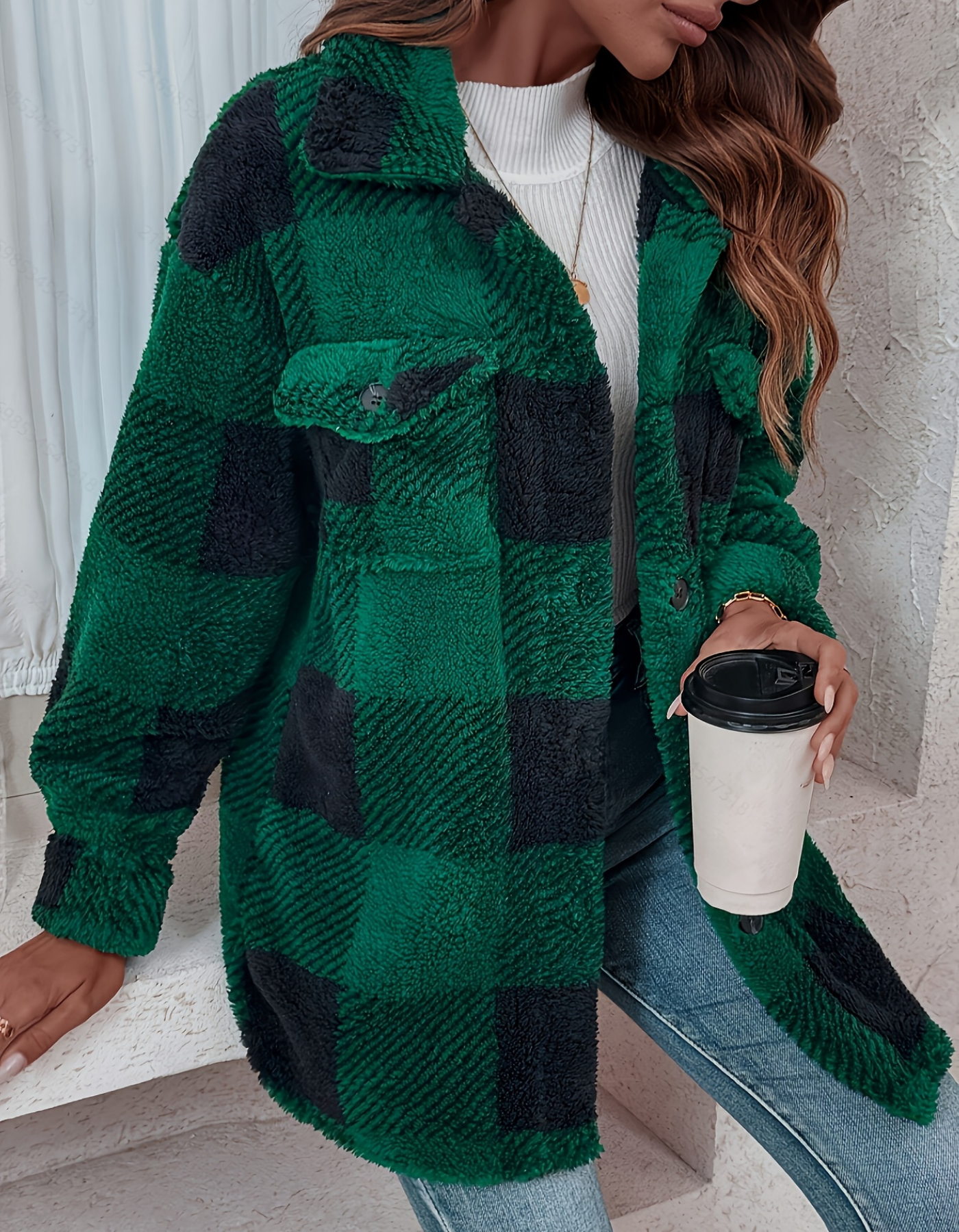 Diese Damen-Fleecejacke mit Knopfleiste und Karomuster ist ideal für kühlere Temperaturen. Sie überzeugt durch ihren lockeren Schnitt, elastische Bündchen und praktische Brusttaschen. Die Jacke ist vielseitig einsetzbar und ideal für die Übergangszeit.